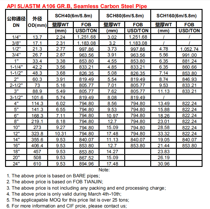 API 5L/ASTM A106 GR.B, nahtloses Kohlenstoffstahlrohr