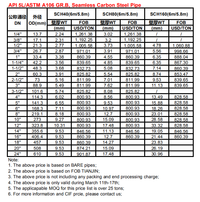 API 5L/ASTM A106 GR.B, nahtloses Kohlenstoffstahlrohr