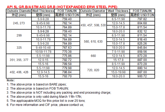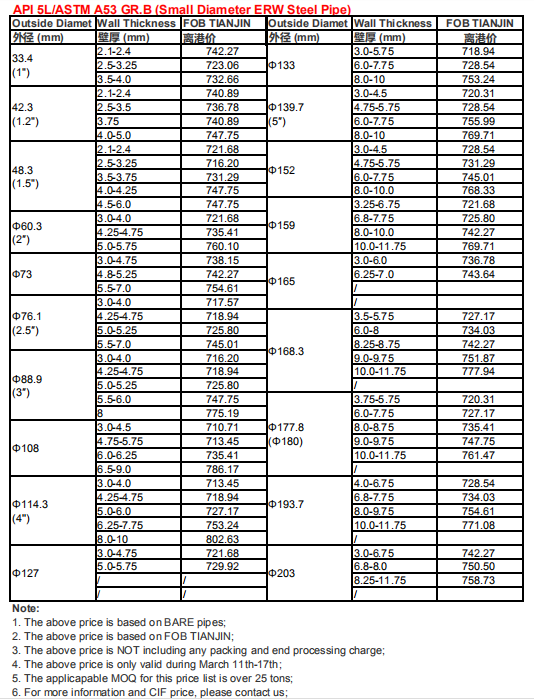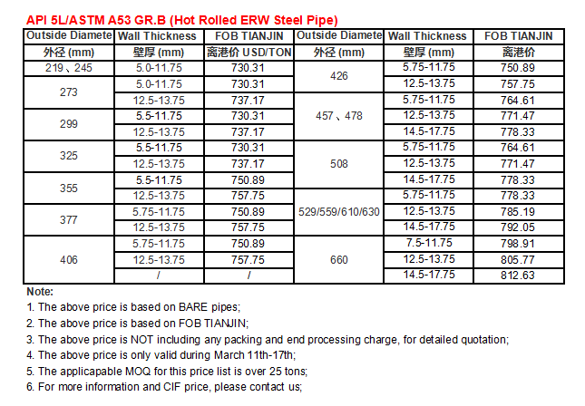 API 5L/ASTM A53 GR.B, tuyaux en acier au carbone ERW