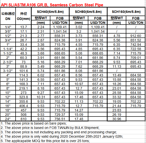 API 5L/ASTM A106 GR.B, tubo in acciaio al carbonio senza saldatura