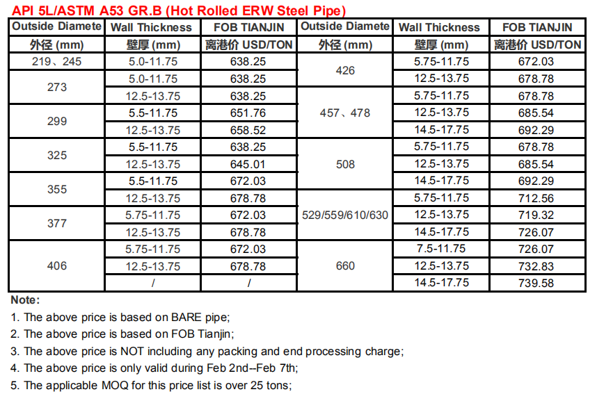 API 5L/ASTM A53 GR.B, tubo in acciaio ERW