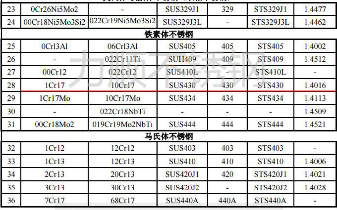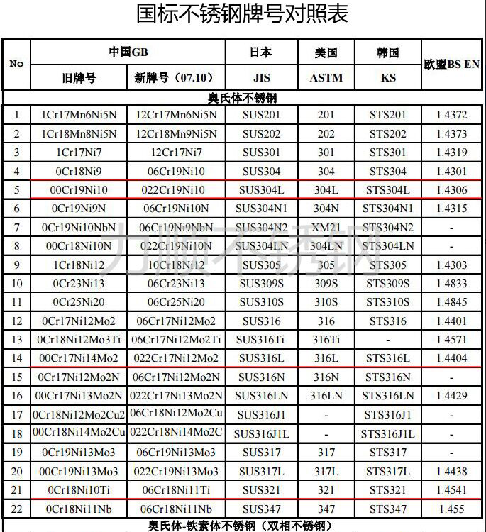 Domestic at Foreign Stainless Steel Grade Comparison